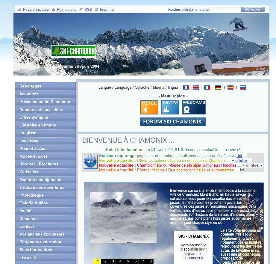 Cette version présentait un design "central", situé en milieu de page, et regroupait plusieurs nouvelles fonctions par rapport à la Version 1, notament la recherche interne au site, ou encore les Webcams. Elle est encore accessible sur la page : Version 1.5